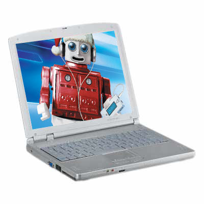 This model is compact, with Athlon 2200, 512KB, 80MB, DVD+/-R, 802-11g.